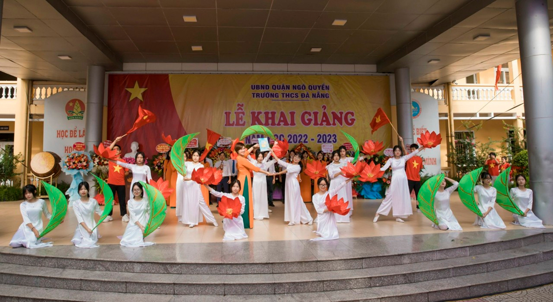Vào ngày khai giảng, tiết mục văn nghệ chào mừng năm học mới của thầy và trò được chuẩn bị công phu.