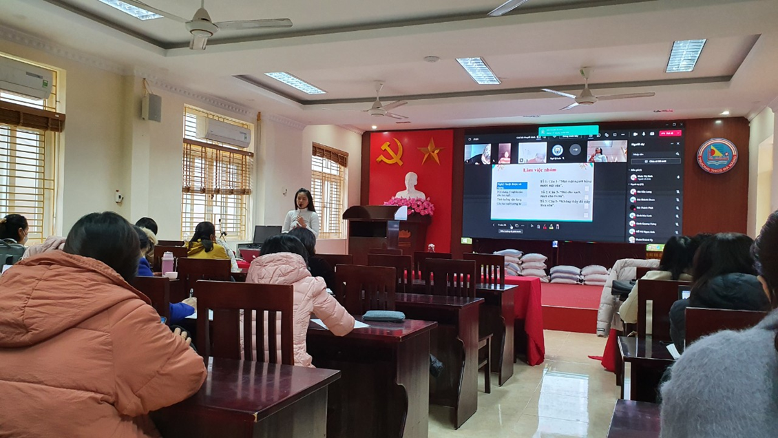 cũng vẫn thực hiện đầy đủ nghiêm túc. Đây là một tiết lên lớp chuyên đề không có học sinh học trực tiếp mà giáo viên dạy qua màn hình.