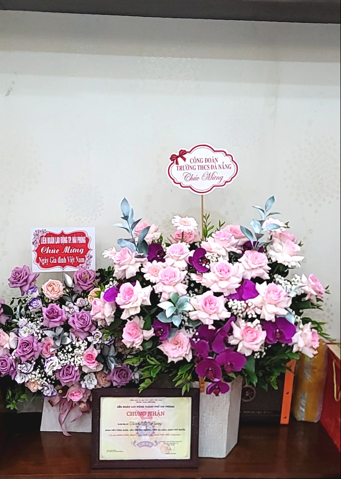 Trong ánh nắng rộn ràng của tháng 6 mùa hè rực rỡ, Công đoàn viên trường THCS Đà Nẵng - đồng chí Trịnh Thu Hương, Hiệu trưởng trường THCS Đà Nẵng vinh dự được đón chứng nhận Gia đình công nhân viên chức lao động tiêu biểu năm 2023 của Liên Đoàn Lao động Thành Phố Hải Phòng. Đến trao chứng nhận là đồng chí Đào Thị Huyền - Phó chủ tịch Liên đoàn Lao động Thành phố Hải Phòng cùng các đồng chí trong Liên đoàn Lao động quận Ngô Quyền.
