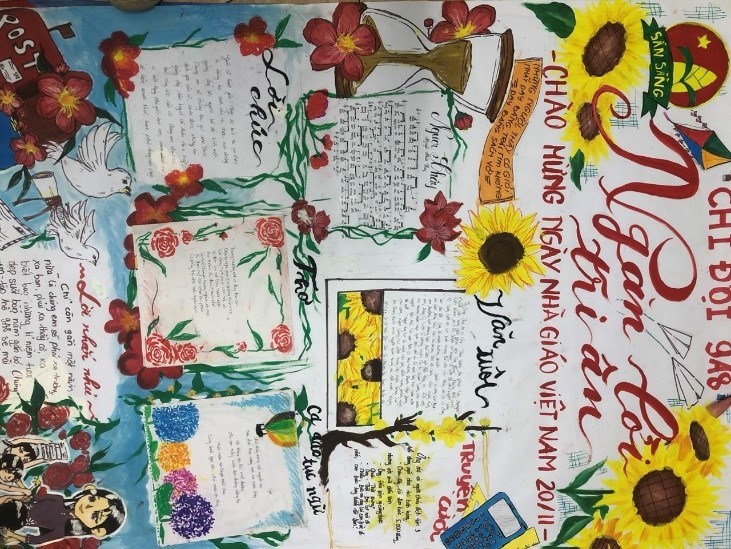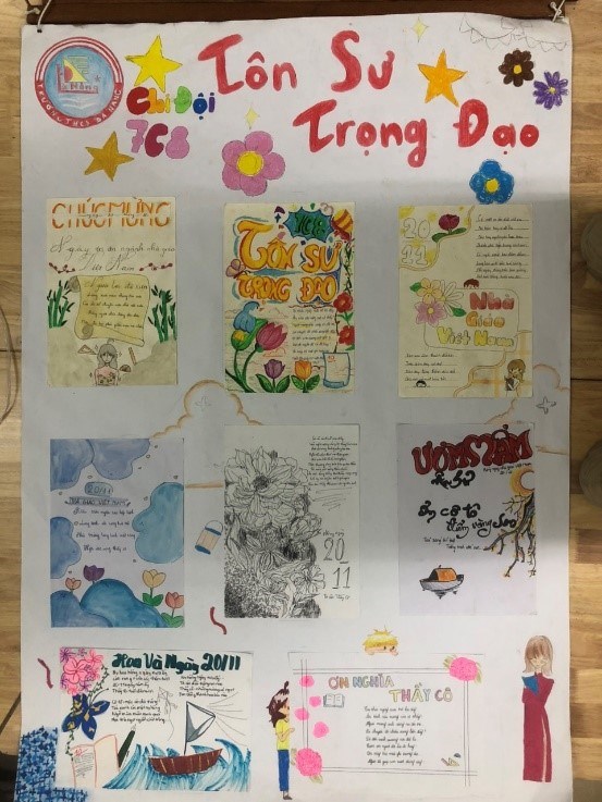 ☘☘☘ Thực hiện Kế hoạch Công tác Đội và phong trào thiếu nhi năm học 2023 – 2024, Liên đội trường THCS Đà Nẵng tổ chức chào mừng kỉ niệm 41 năm ngày Nhà giáo Việt Nam . Cùng với các hoạt động thi đua dạy tốt - học tốt, kiểm tra và đánh giá công trình măng non, Liên đội còn phát động cuộc thi làm báo tường, báo ảnh, video clip nhằm tri ân đến các thầy cô giáo. Cuộc thi đã nhận được sự hưởng ứng nhiệt tình từ phía các em học sinh.