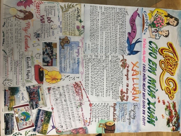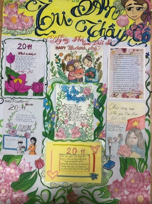 ☘☘☘ Tham dự có 42 bài dự thi. Mỗi lớp đã mang đến cuộc thi một tờ báo tường với những tên gọi khác nhau nhưng cùng chủ đề thầy cô, bạn bè, trường lớp như: Ơn thầy , Tri ân thầy cô, Người lái đò, Uống nước nhớ nguồn, Chắp cánh ước mơ...