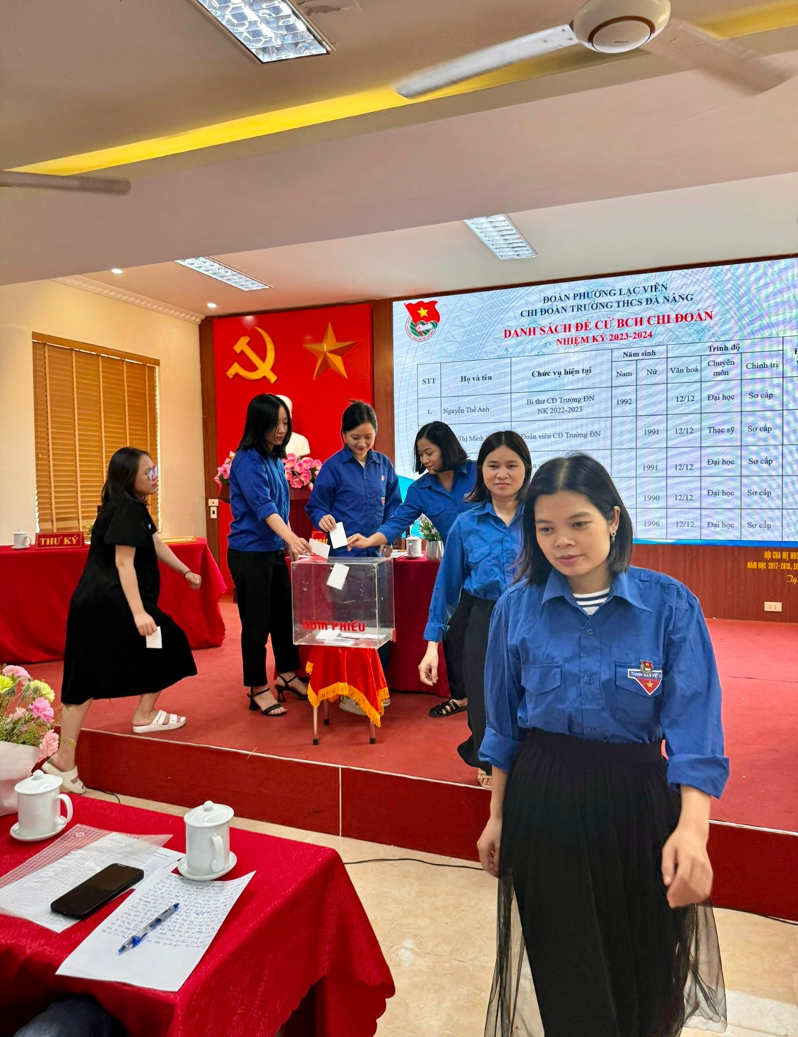 Với tinh thần dân chủ, cởi mở, Đại hội đã tiến hành bầu BCH Chi đoàn giáo viên nhiệm kỳ 2023-2024 gồm 5 đồng chí: đồng chí Nguyễn Thế Anh, đồng chí Bùi Thị Thanh Hương, đồng chí Phạm Thị Trang, đồng chí Đinh Thị Minh Hồng, và đồng chí Đỗ Thị Trang. Với sự quyết tâm, nhiệt huyết của tuổi trẻ và tinh thần vượt khó, BCH Chi đoàn THCS Đà Nẵng xin hứa thực hiện thắng lợi nghị quyết Đại hội đề ra. Chắc chắn rằng, BCH chi đoàn với những nhân tố mới sẽ là lá cờ đầu, tiên phong dẫn dắt Chi đoàn THCS Đà Nẵng vững mạnh và phát triển trong năm học 2023-2024.
