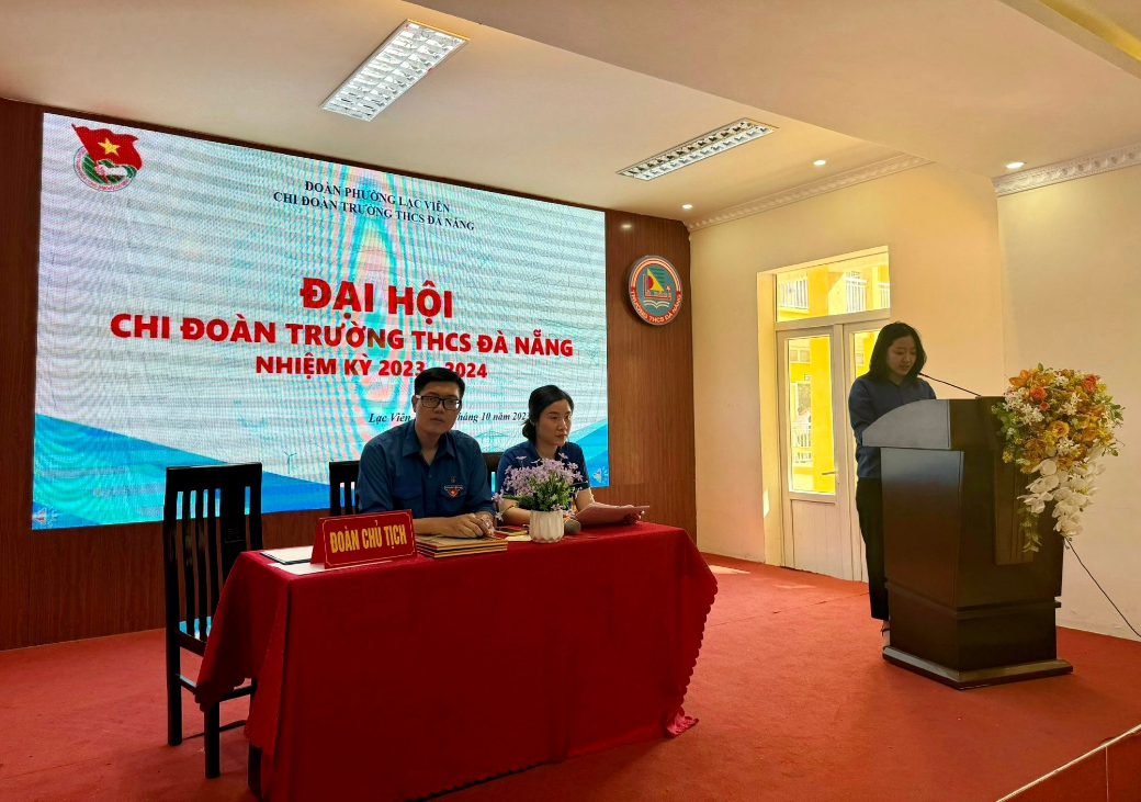 - Thực hiện chỉ đạo của Điều lệ Đoàn TNCS Hồ Chí Minh và Kế hoạch của Ban Thường vụ Đoàn phường Lạc Viên về việc tổ chức Đại hội các chi đoàn nhiệm kì 2023-2024. Được sự đồng ý của cấp ủy Chi bộ và BTV Đoàn phường Lạc Viên, ngày 09/10/2023, Chi đoàn Trường THCS Đà Nẵng đã long trọng tổ chức Đại hội Chi đoàn trường nhiệm kỳ 2023-2024 nhằm tổng kết, đánh giá kết quả thực hiện nhiệm vụ công tác Đoàn và Phong trào thanh thiếu niên nhiệm kỳ 2022-2023, đề ra phương hướng nhiệm vụ nhiệm kỳ 2023-2024