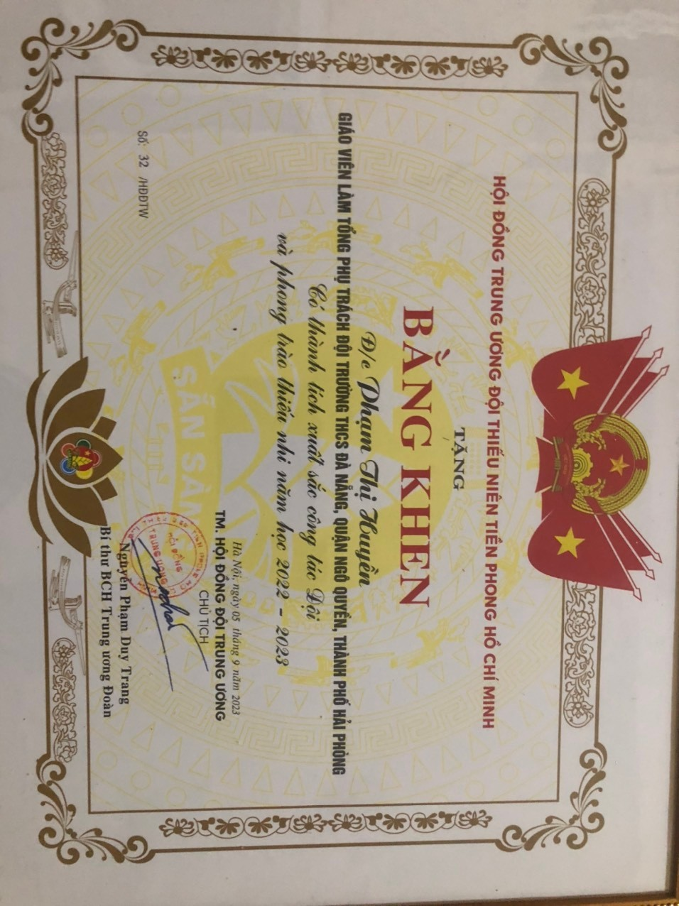 tặng bằng khen cho Liên đội trường THCS Đà Nẵng