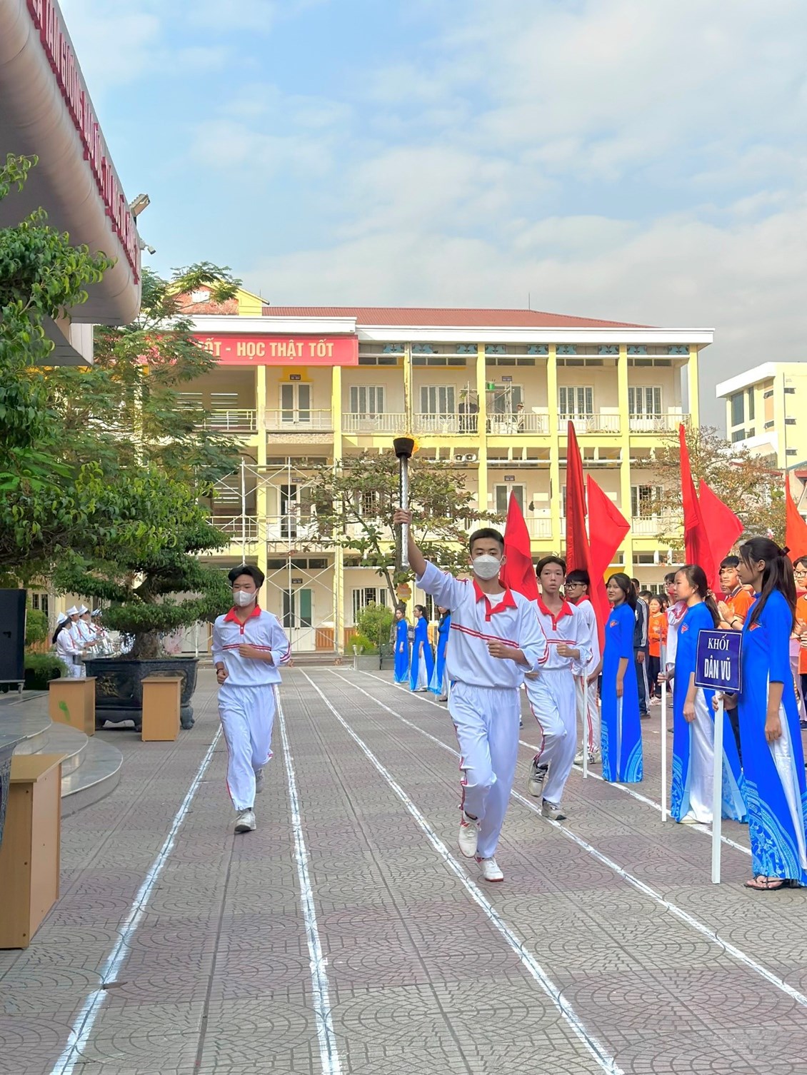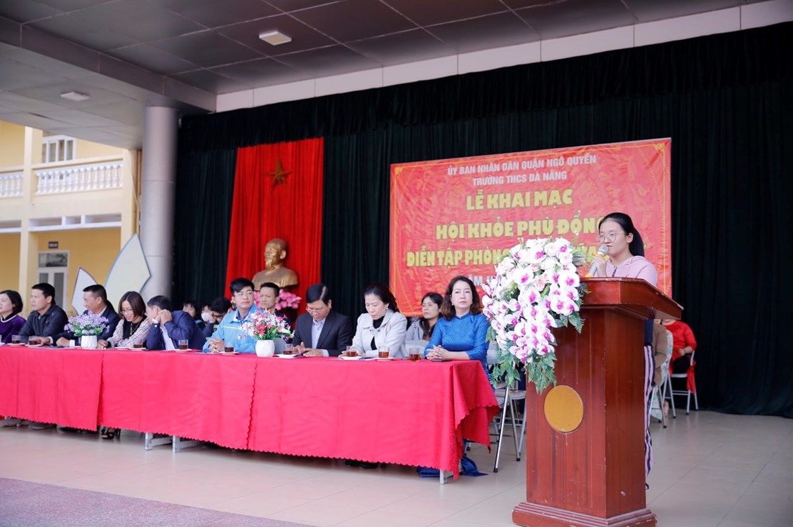 Phần lễ diễn ra trong không khí trang nghiêm và cảm xúc. Sau nghi lễ Chào là bài diễn văn khai mạc đầy ấn tượng của cô Trịnh Thu Hương. Các em học sinh được chứng kiến màn rước đuốc của vận động viên Ngô Hải Đăng Khôi – học sinh lớp 9A2 thay mặt cho các vận động viên mang ngọn lửa tượng trưng cho sức mạnh của tri thức, của sự kiên trì và bền bỉ đầy nhiệt huyết của tuổi trẻ trường THCS Đà Nẵng thắp sáng trên bầu trời Việt Nam. Thay mặt cho các vận động viên toàn trường, em Nguyễn Ngọc Trang lớp 9A5 đã đọc lời hứa vận động viên với cam kết thực hiện tốt những quy định của hội thi, không gian lận, thi đấu với một tinh thần thể thao mạnh mẽ nhất. Khép lại phần lễ, thầy Nguyễn Văn Nam thay mặt tổ trọng tài lên đọc lời tuyên thệ với cam kết đảm bảo sự công tâm và khách quan.