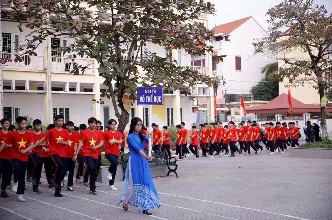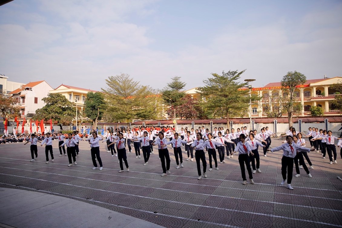 Màn đồng diễn thể dục giữa giờ của học sinh đại diện khối 6 biểu diễn với chủ đề “Sức khỏe hôm nay”, màn nhảy dân vũ sáng tạo, độc đáo, sôi động của các em học sinh khối 7, màn biểu diễn võ thể dục của 80 em học sinh khố 8 mạnh mẽ, kĩ thuật trên nền nhạc hào hùng “Dòng máu Lạc Hồng” thể hiện ý chí, quyết tâm của tuổi trẻ.