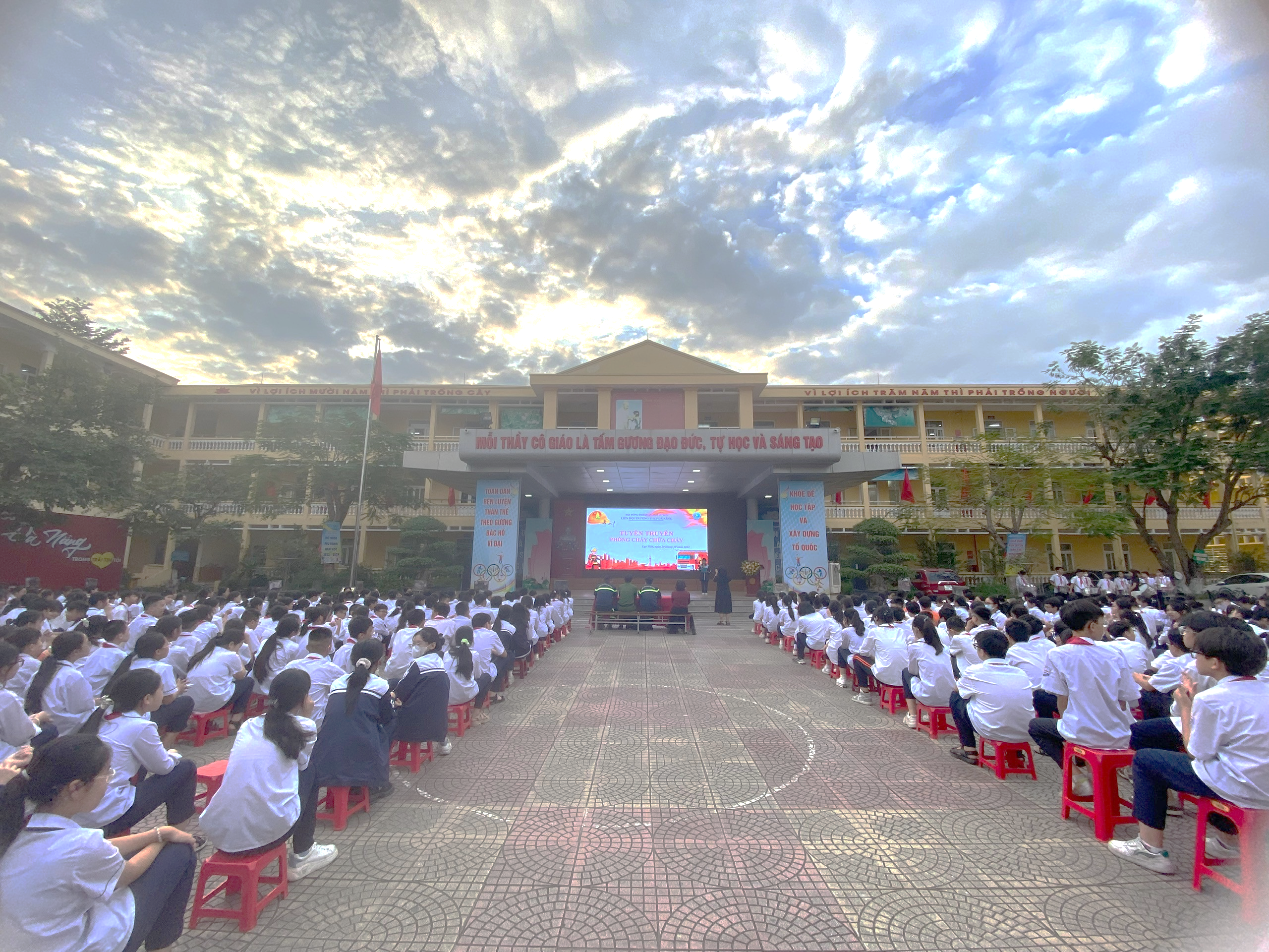 Học sinh THCS Đà Nẵng nghe chăm chú nghe tuyên truyền phòng cháy chữa cháy