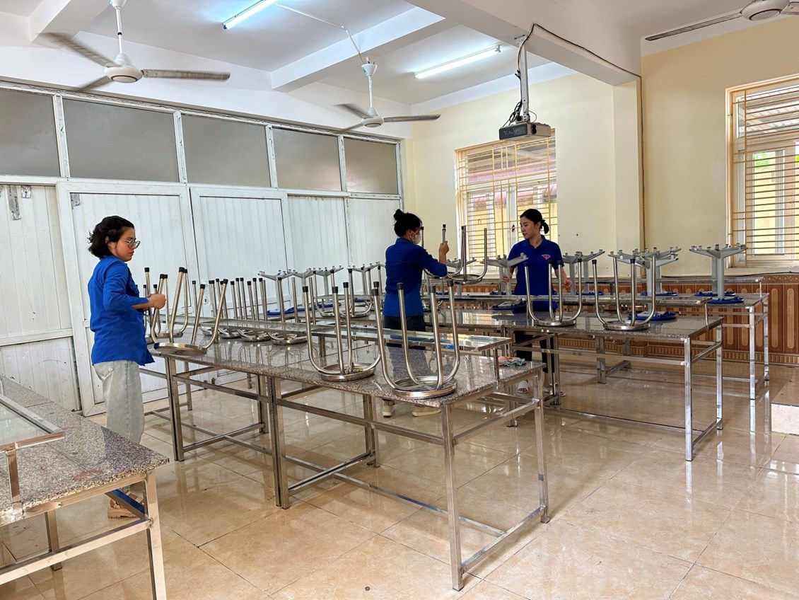 Với mong muốn mang đến một không gian xanh – sạch – đẹp, các Đoàn viên Chi đoàn giáo viên trường THCS Đà Nẵng đã tham gia nhiệt tình, sôi nổi, thể hiện được tinh thần xung kích, tình nguyện của tuổi trẻ. Trong 3 tiếng lao động các đồng chí đã dọn vệ sinh các phòng thực hành Sinh học, Hóa học, Vật lý, Công nghệ, các phòng Bồi dưỡng từ quét nhà, quét mạng nhện đến lau phòng, lau bàn ghế, sắp xếp lại bàn ghế để phù hợp với việc học thực hành của học sinh. Bên cạnh đó, các đồng chí Đoàn viên còn tích cực dọn dẹp lại kho ghế, lau tất cả ghế của học sinh và đếm, phân loại cụ thể. Qua đó, đã góp phần làm sạch, đẹp thêm cho ngôi trường Đà Nẵng thân yêu.