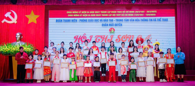 Các em học sinh nhận giấy khen từ BTC Hội thi Sơn ca quận Ngô Quyền năm học 2024-2025