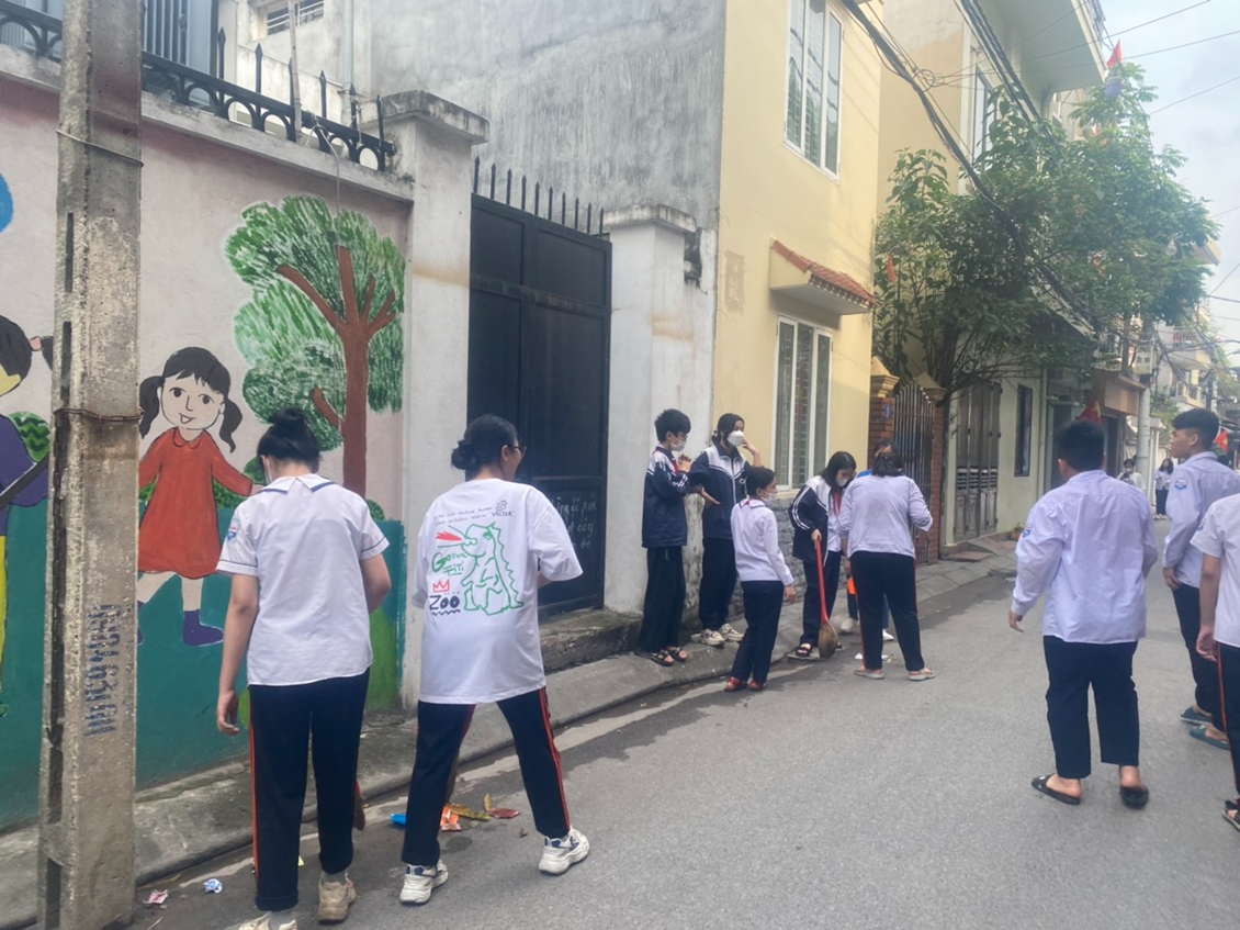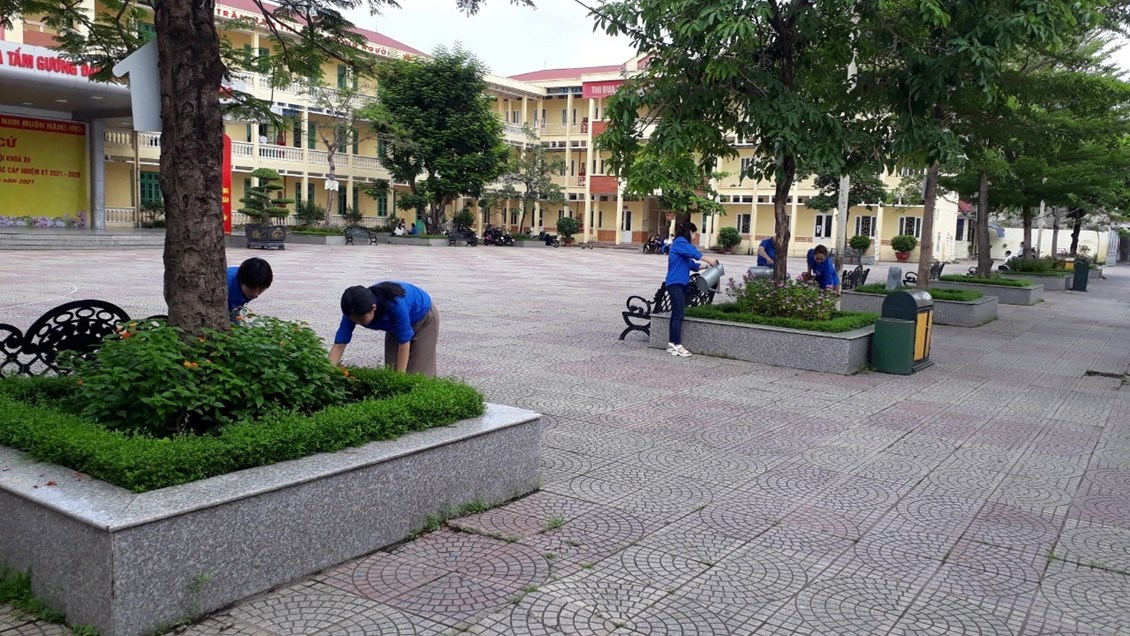 Chi đoàn Giáo viên dọn vệ sinh tại khu vực cổng trường THCS Đà Nẵng
