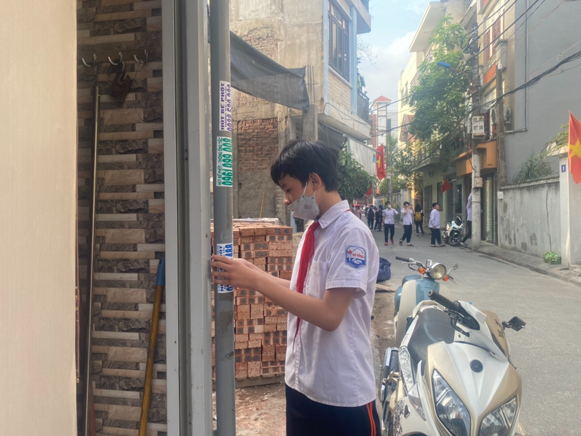Học sinh tham gia xóa biển quảng cáo tại ngõ 244 Đà Nẵng