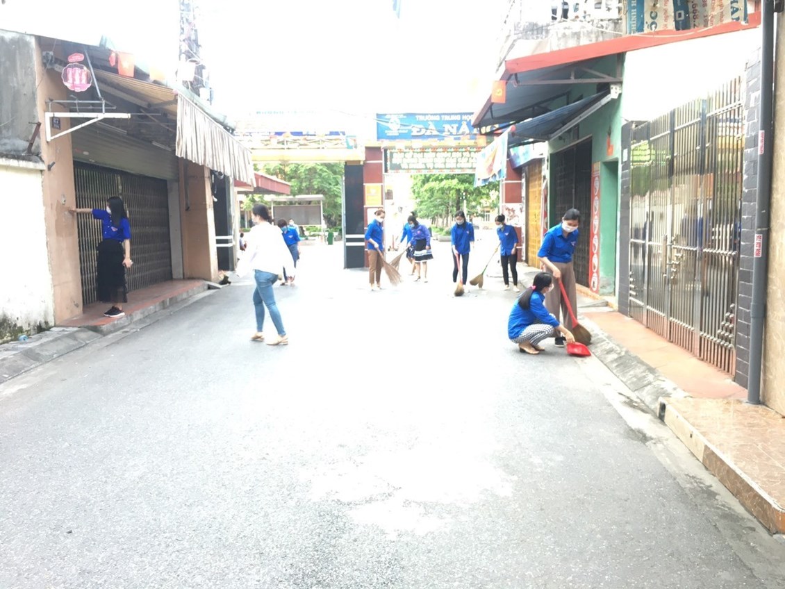 Đoàn viên thanh niên tham gia dọn vệ sinh tại khu ngõ 244 đường Đà Nẵng