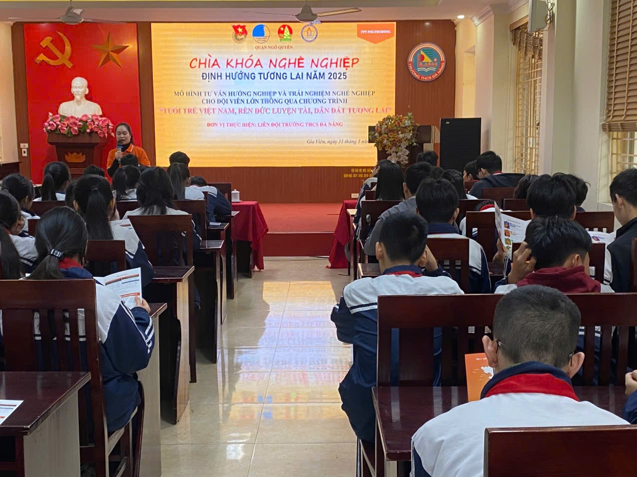 Thực hiện kế hoạch công tác đội và Phong trào Thiếu nhi năm học 2024 – 2025 Liên đội Trường THCS Đà Nẵng đã triển khai mô hình “Tư vấn hướng nghiệp và trải nghiệm nghề nghiệp ” thông qua chương trình “Tuổi trẻ Việt Nam – Rèn đức luyện tài – Dẫn dắt tương lai” vào sáng ngày 31 tháng 3 năm 2025 với sự tham gia của hơn 400 các bạn học sinh khối 9.