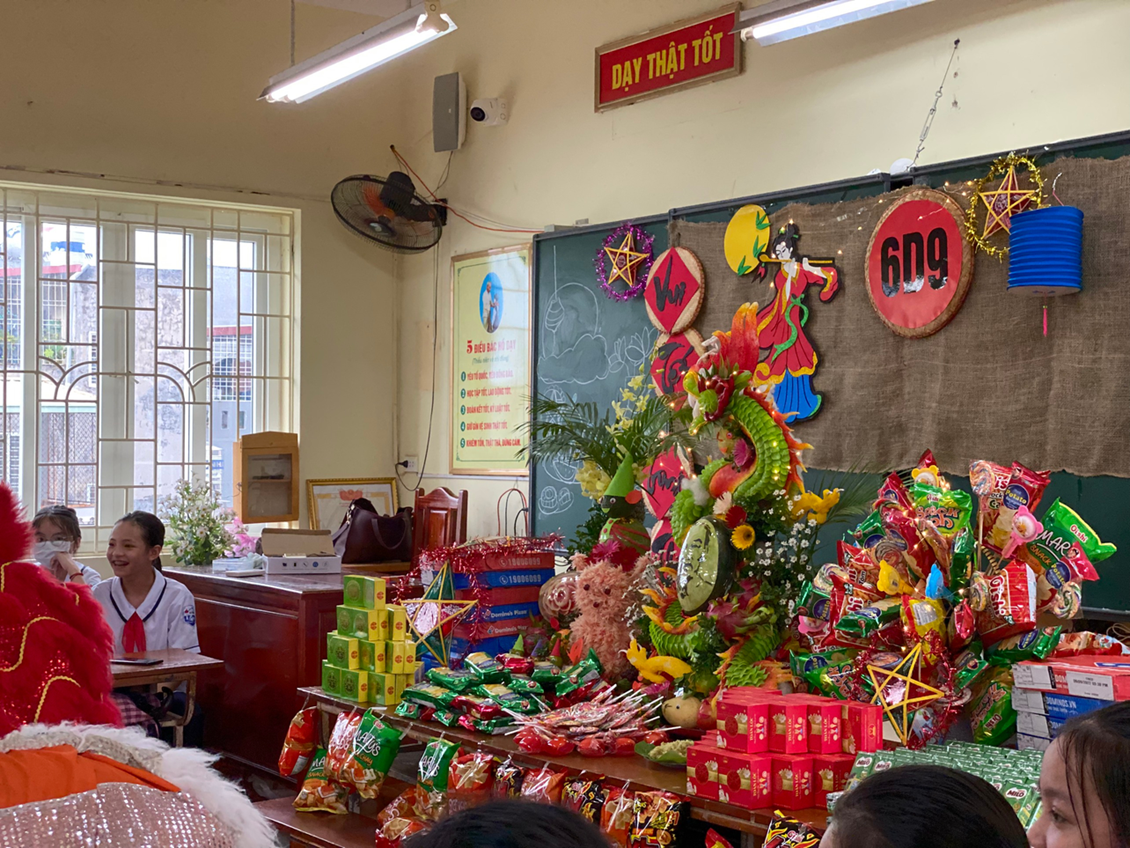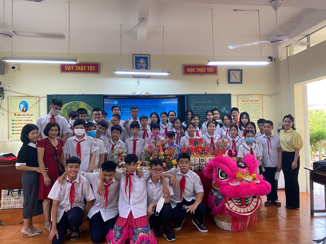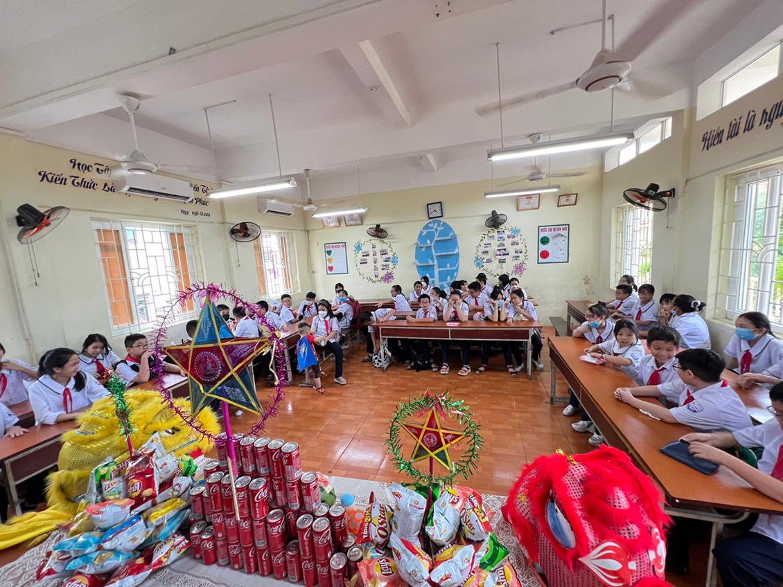 Chương trình “Trung thu cho em” không chỉ được tổ chức trang trọng ở cấp trường mà còn diễn ra trong các lớp học với gần 2000 học sinh tại 42 Chi đội. Những tiết mục văn nghệ, những màn múa lân sôi động cùng khâu tổ chức do các em tự biên soạn dưới sự hướng dẫn của giáo viên chủ nhiệm và Chi hội phụ huynh chính là dịp để mỗi học sinh phát huy được tài năng cũng như sự sáng tạo của mình. Những chiếc bánh nướng, những quả bưởi thơm…được các em chia nhau trong tiếng cười giòn tan chính là những giây phút yêu thương gắn kết tình bạn, là sự khởi đầu trọn vẹn khi các em bước vào năm học mới.