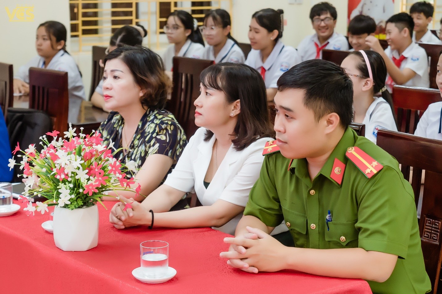 Tham dự chương trình có cô Trần Thị Cẩm Nhung - Phó bí thư chi bộ- Phó hiệu trưởng nhà trường- Trưởng ban tổ tư vấn tâm lí học đường; Chú Nguyễn Tiến Hùng cán bộ đội Cảnh sát Điều tra tội phạm về ma túy Công an Quận Ngô Quyền; Các thầy cô Trung tâm Kĩ năng sống Smile, các thầy cô trong tổ tư vấn tâm lí học đường, đại diện cha mẹ học sinh cùng các bạn học sinh đại diện cho các lớp.