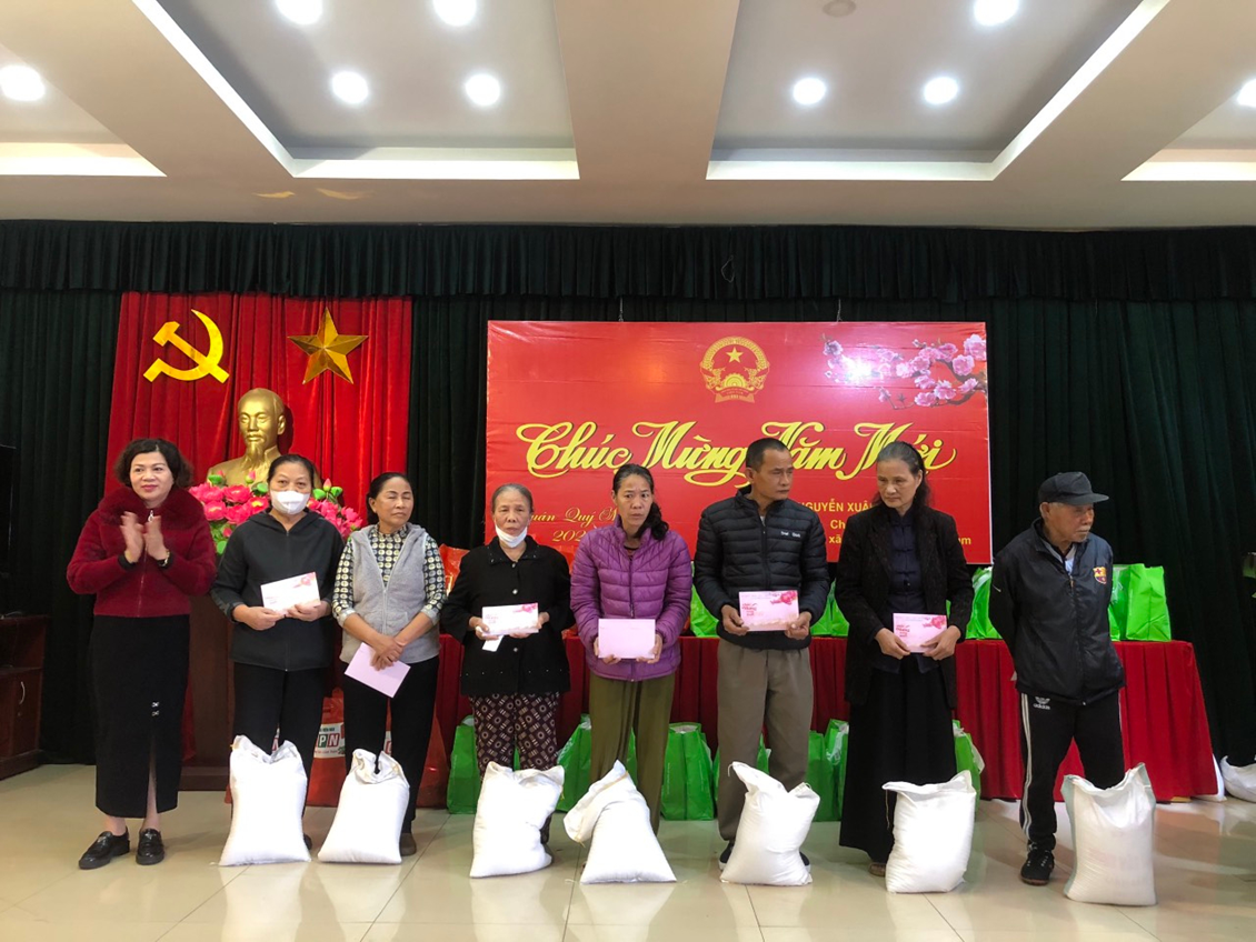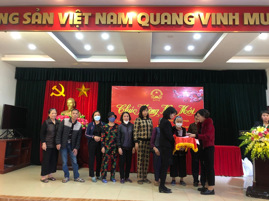 Đại diện BGH nhà trường tặng quà tại phường Lạc Viên