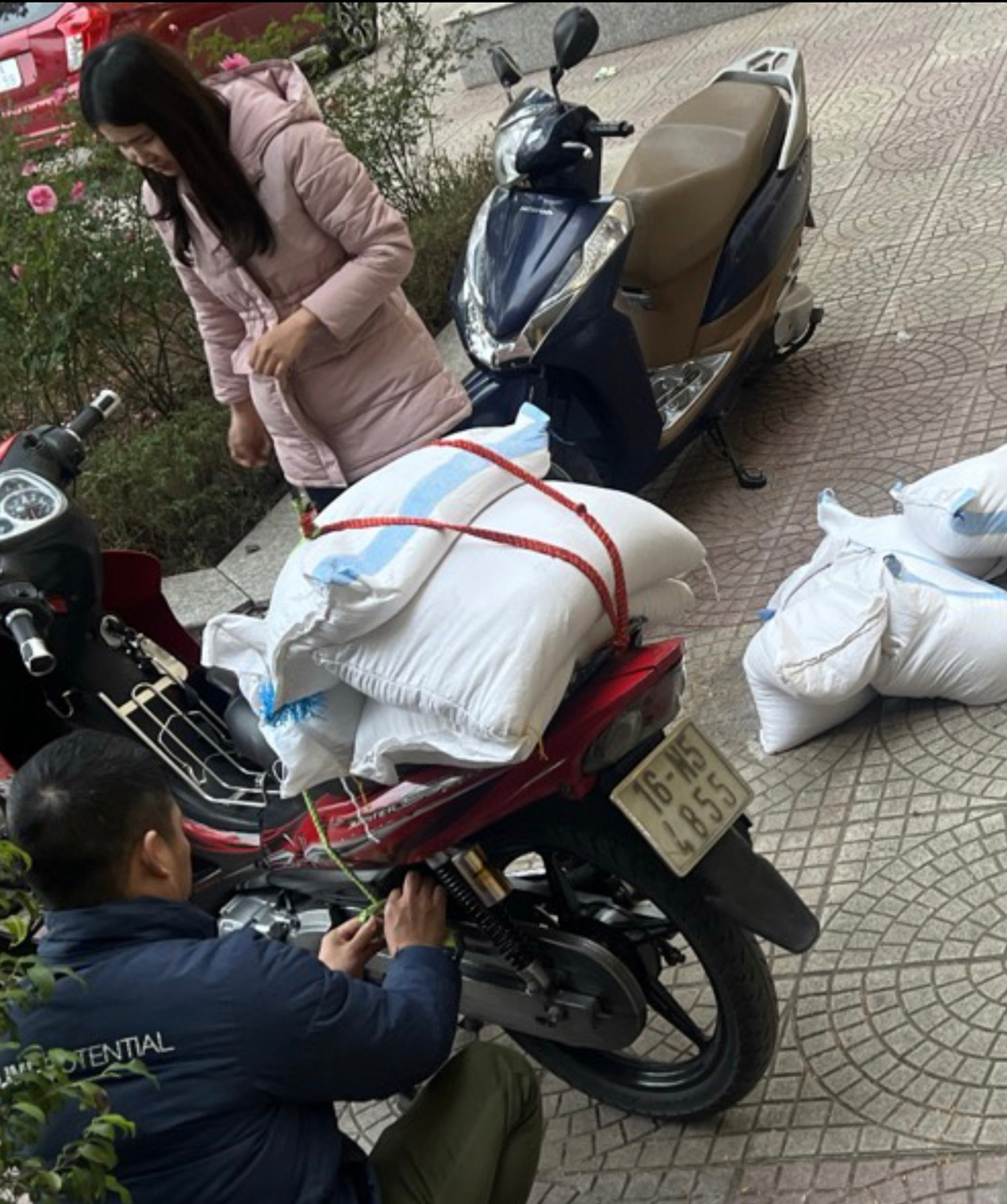 Thầy, cô giáo trường THCS Đà Nẵng vận chuyển gạo tặng người già neo đơn có hoàn cảnh khó khăn, không nơi nương tựa.