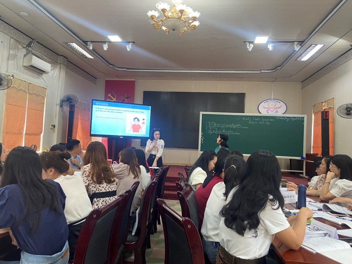 Sáng nay, ngày 16.8.2023, dưới sự chỉ đạo, hướng dẫn của các đồng chí chuyên viên PGD&ĐT, hàng trăm giáo viên quận Ngô Quyền đã tham gia Chương trình Lên lớp dạy thử SGK lớp 8 đã lựa chọn năm 2023-2024. Trường THCS Đà Nẵng được PGG chọn dạy thử SGK môn Tiếng Anh 8 do cô giáo Ngô Thị Chang lên lớp dạy thể nghiệm. Trong tiết dạy, giáo viên đã mạnh dạn thay đổi hình thức bài tập để phù hợp với đối tượng học sinh, giúp học sinh làm quen với cấu trúc đề thi vào lớp 10 THPT, sử dụng và khai thác tốt bảng tương tác thông minh.