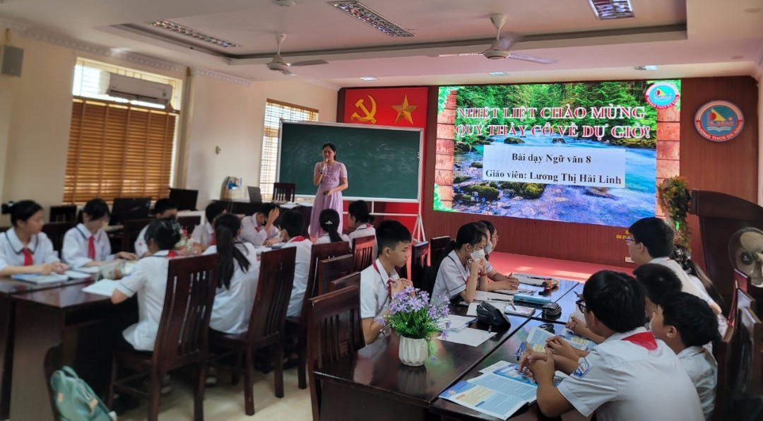 (Hình ảnh cô giáo Lương Thị Hải Linh dạy thể nghiệm môn Ngữ văn 8)