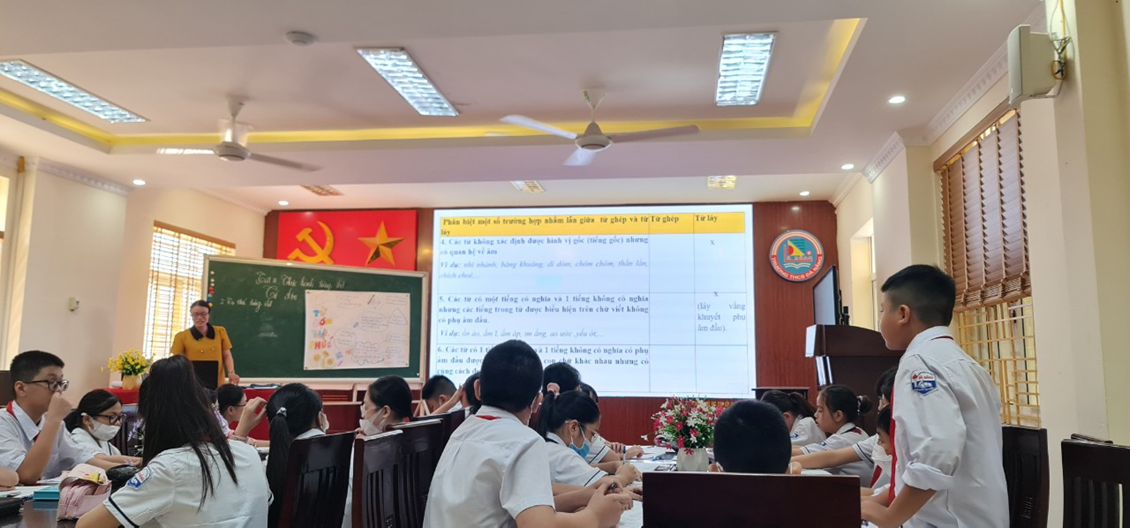 5. Nhiệm vụ trọng tâm trong tháng 9 là kiểm tra chuyên môn các đồng chí: Đỗ Trang môn Ngữ Văn lớp 7C6 (tiết 9), đồng chí Phạm Trang Ngữ văn lớp 8B8 (Tiết 11); LLCĐ tổ 2 có 2 đồng chí: đồng chí Đỗ Dương tiết Anh lớp 7C1 và đồng chí Mai Hằng tiết Văn lớp 6D9. Với những tiết LLCĐ và KTCM đều được tổ nhận xét, rút kinh nghiệm trên tinh thần ghi nhận sự nỗ lực của cả thầy và trò trong thực hiện đổi mới PPKT dạy học. Các tiết dạy đều sử dụng các phương pháp, kĩ thuật dạy học tích cực như: sử dụng sơ đồ tư duy, thảo luận nhóm, chia sẻ cặp đôi, thuyết trình,… Giúp HS hình thành các năng lực và phẩm chất quan trọng như: yêu nước, chăm chỉ và trách nhiệm, tự học, năng lực giao tiếp, hợp tác, năng lực giải quyết vấn đề, năng lực sáng tạo, năng lực sử dụng ngôn ngữ qua việc HS được trao đổi thảo luận nhóm, phát biểu ý kiến cá nhân, làm MC dẫn chương trình trò chơi. Tiết học tạo được sự hứng thú cho học trò và giúp đồng nghiệp học tập cũng như rút kinh nghiệm. Đổi mới sinh hoạt chuyên môn theo hướng nghiên cứu bài học và lên lớp chuyên đề.