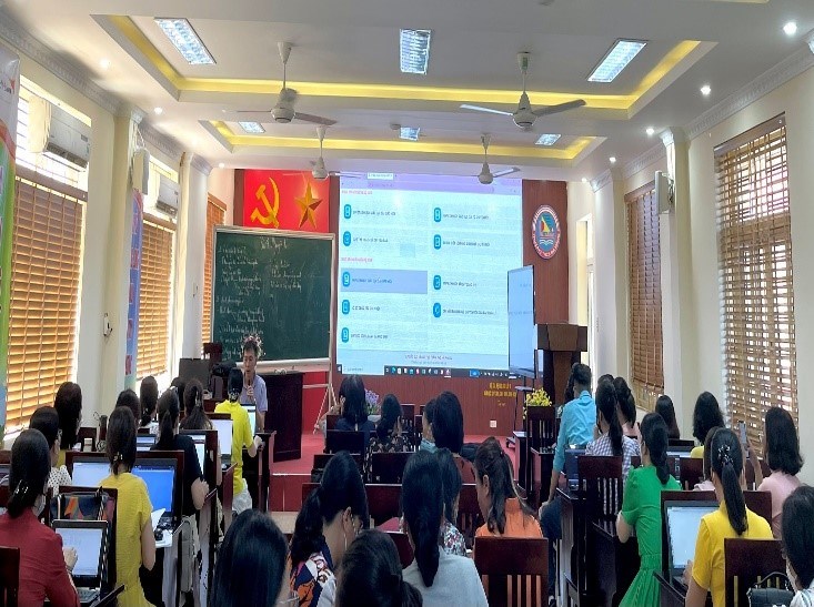 Một trong những nhiệm vụ trọng tâm của Nhà trường là đẩy mạnh chuyển đổi số, ứng dụng công nghệ thông tin và truyền thông trong dạy, học và các hoạt động chuyên môn nên ngay tuần đầu tổ KHXH đã triển khai và thực hiện soạn bài giảng điện tử và được thẩm định kĩ lưỡng ở tất cả các môn đạt 30% tiến độ. Năm học này cùng với các trường trong quận và thành phố, các thầy cô cũng được tiếp cận với nhiều đổi mới trong quản lí chuyên môn đặc biệt là sự đồng bộ về các Kế hoạch của tổ, nhóm, kế hoạch giáo dục của giáo viên,…để đẩy lên cơ sở dữ liệu ngành kịp tiến độ năm học.