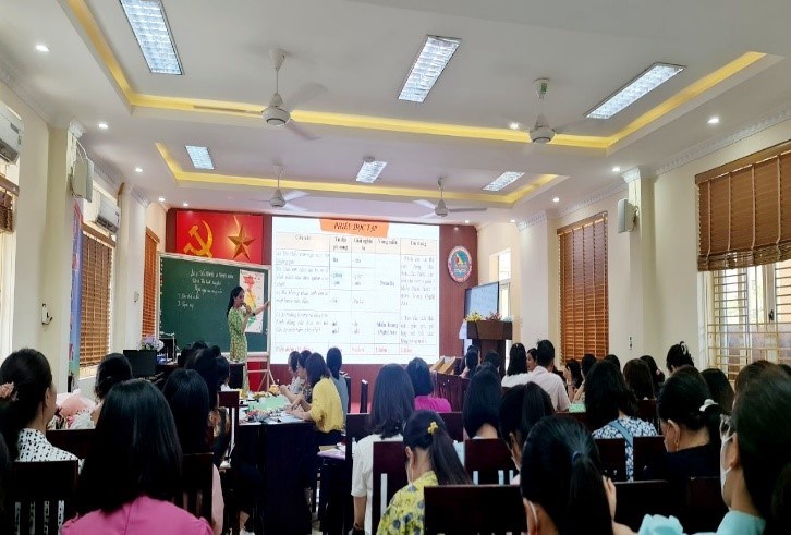 Điểm nổi bật trong đổi mới sinh hoạt chuyên môn lần này là trong 2 tiết học các giáo viên được tham gia với vai trò là học sinh nên có những trải nghiệm mới vô cùng thú vị từ các hoạt động học tập với các các hình thức, phương pháp, kĩ thuật dạy rất phong phú, sinh động thông qua các trò chơi, đóng vai, hoạt động nhóm,...
