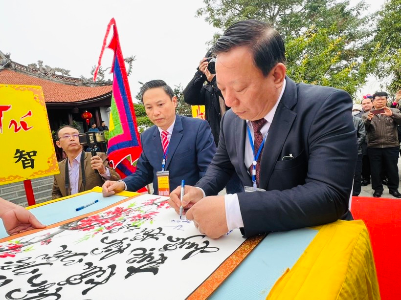 Ông Nguyễn Đức Thọ, Phó Chủ tịch UBND TP Hải Phòng kí khai bút đầu xuân.