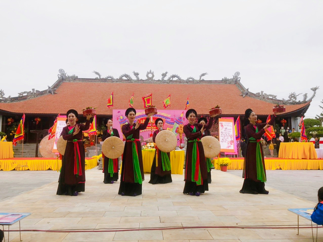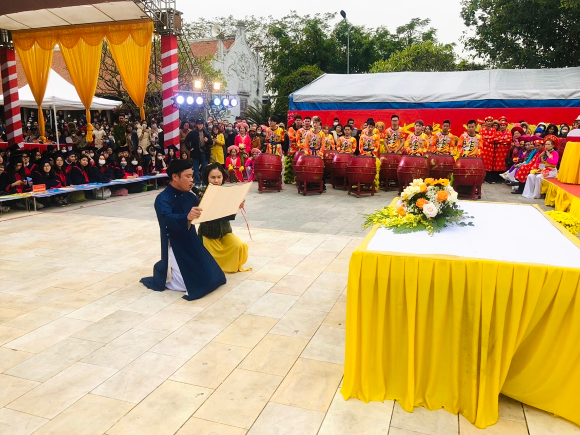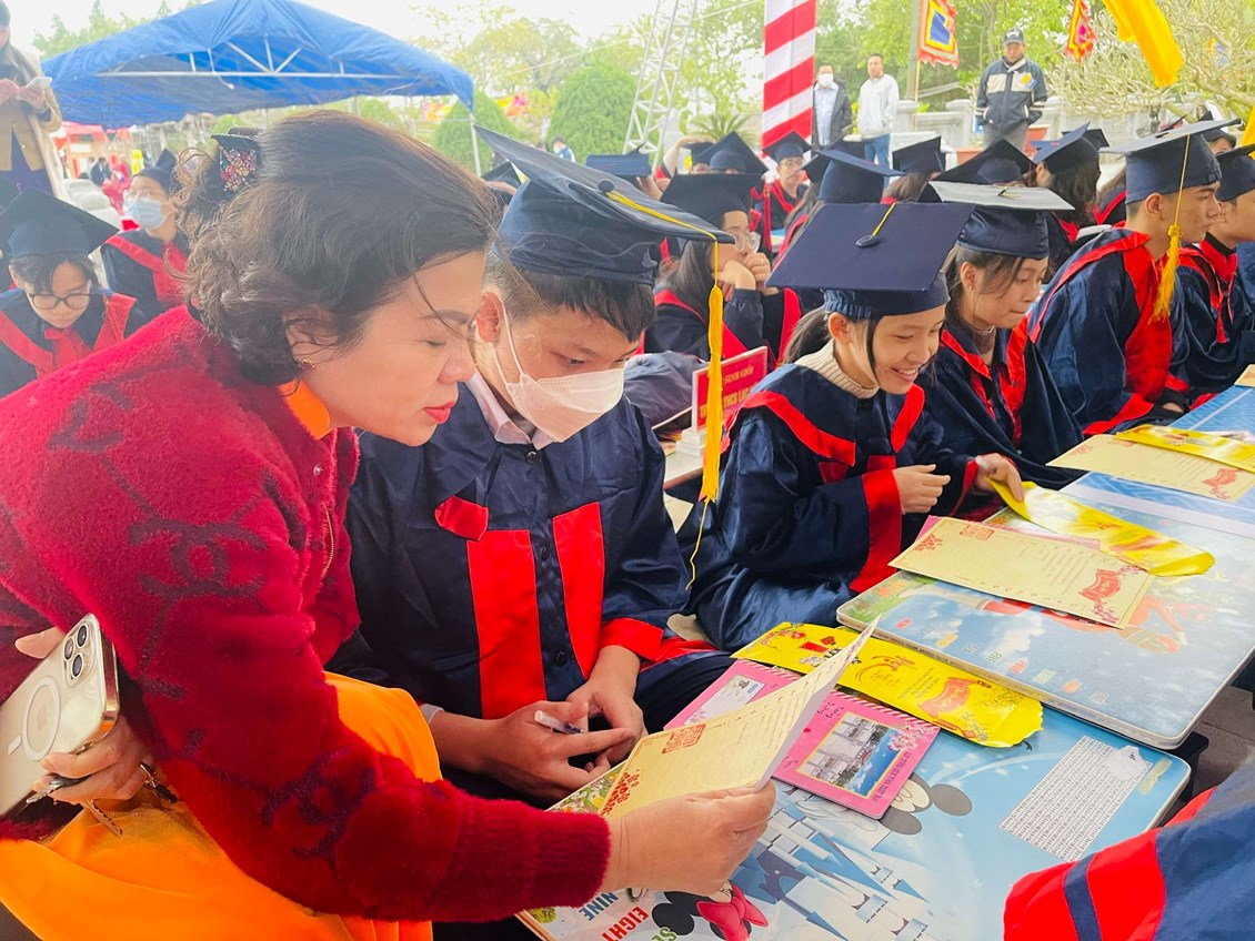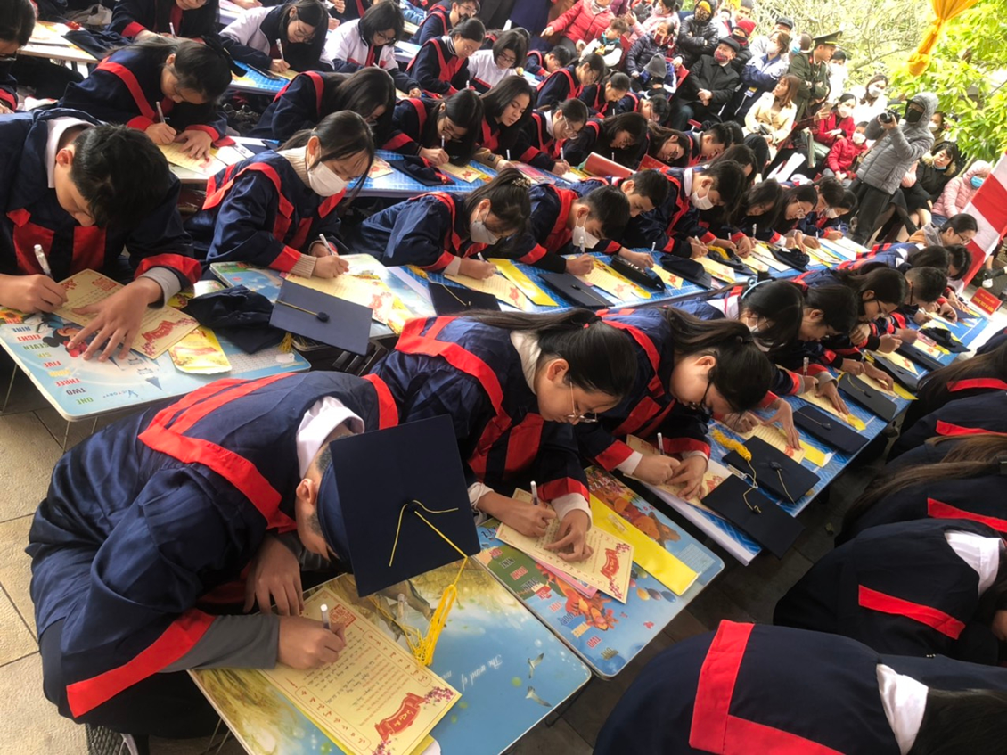 22 em học sinh giỏi lớp 9 cùng 5 cô giáo của Trường THCS Đà Nẵng tham dự Lễ Khai bút đầu Xuân Quý Mão tại Khu tưởng niệm Vương triều Mạc