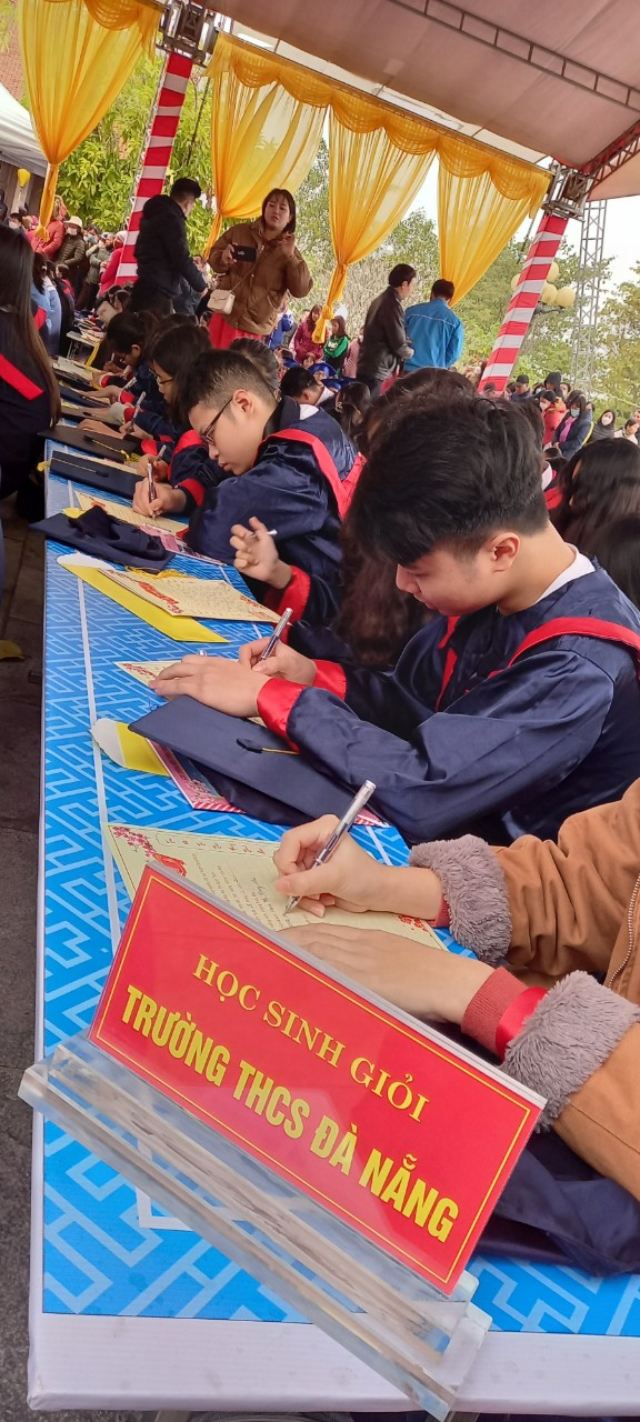 ✍️ Lễ hội khai bút xuân Quý Mão được tổ chức trong 3 ngày từ mùng 6 đến mùng 8 Tết, có sự tham gia của 635 em học sinh giỏi được lựa chọn từ các trường trên địa bàn thành phố về tham dự. Trong đó Trường THCS Đà Nẵng vinh dự có sự tham dự của 22 học sinh giỏi lớp 9. Với chủ đề “Thành phố Hải Phòng trong ước mơ của em”, các em học sinh đã đặt những nét khai bút đầu Xuân của mình về một thành phố Hải Phòng phát triển, năng động, hiện đại, hiếu khách và thân thiện; một Hải Phòng tăng tốc chuyển mình với công nghệ số như một sự cất cánh bay lên của Rồng thiêng vương triều Mạc. Đồng thời, các em cũng đã gửi gắm vào trang khai bút những mong muốn, ước mơ trên con đường đèn sách và lập nghiệp của mình. Chúc những ước mơ của các em trở thành hiện thực./.