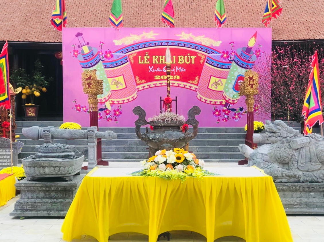 Bút thiêng được rước từ Tổ đường nhà Mạc về an vị tại lễ đài.