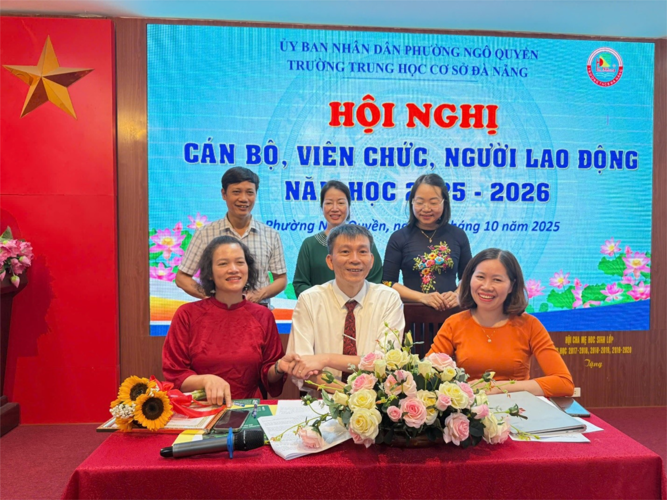💐Thực hiện Hướng dẫn số 7074/HD – SGDĐT ngày 25 tháng 9 năm 2025 của Sở GD&ĐT Hải Phòng về Hướng dẫn tổ chức Hội nghị cán bộ, viên chức, người lao động năm học 2025-2026; Công văn số 925/UBND-VHXH ngày 23/9/2025 của UBND phường Ngô Quyền về việc thực hiện Luật dân chủ ở cơ sở và tổ chức Hội nghị cán bộ, viên chức, người lao động; chiều ngày 17/10/2025, Trường THCS Đà Nẵng long trọng tổ chức Hội nghị Cán bộ, viên chức, người lao động năm học 2025 – 2026.