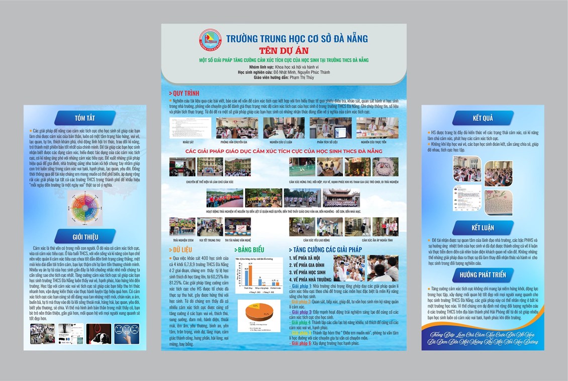 Nhận thấy đây là một vấn đề lớn, ảnh hưởng rất nhiều đến mối quan hệ tốt đẹp giữa bạn với bạn, giữa thầy với trò, đến kết quả học tập, đến môi trường lành mạnh không bạo lực, không trầm cảm, không phẫn nộ nơi trường học, hai bạn học sinh lớp 8B3 là Đỗ Nhật Minh, Nguyễn Phúc Thành, dưới sự hướng dẫn của cô giáo Phạm Thị Thủy, dạy môn Ngữ văn của lớp đã tiến hành nghiên cứu đề tài khoa học, lĩnh vực hành vi: Một số giải pháp quản lí cảm xúc tiêu cực của học sinh tại trường THCS Đà Nẵng.