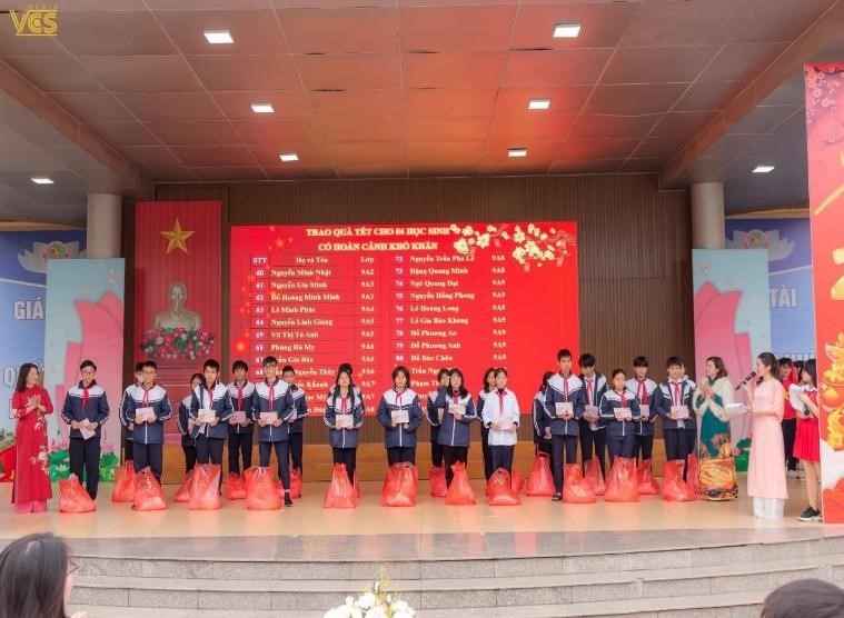 Niềm vui của các em học sinh khi được nhận quà
