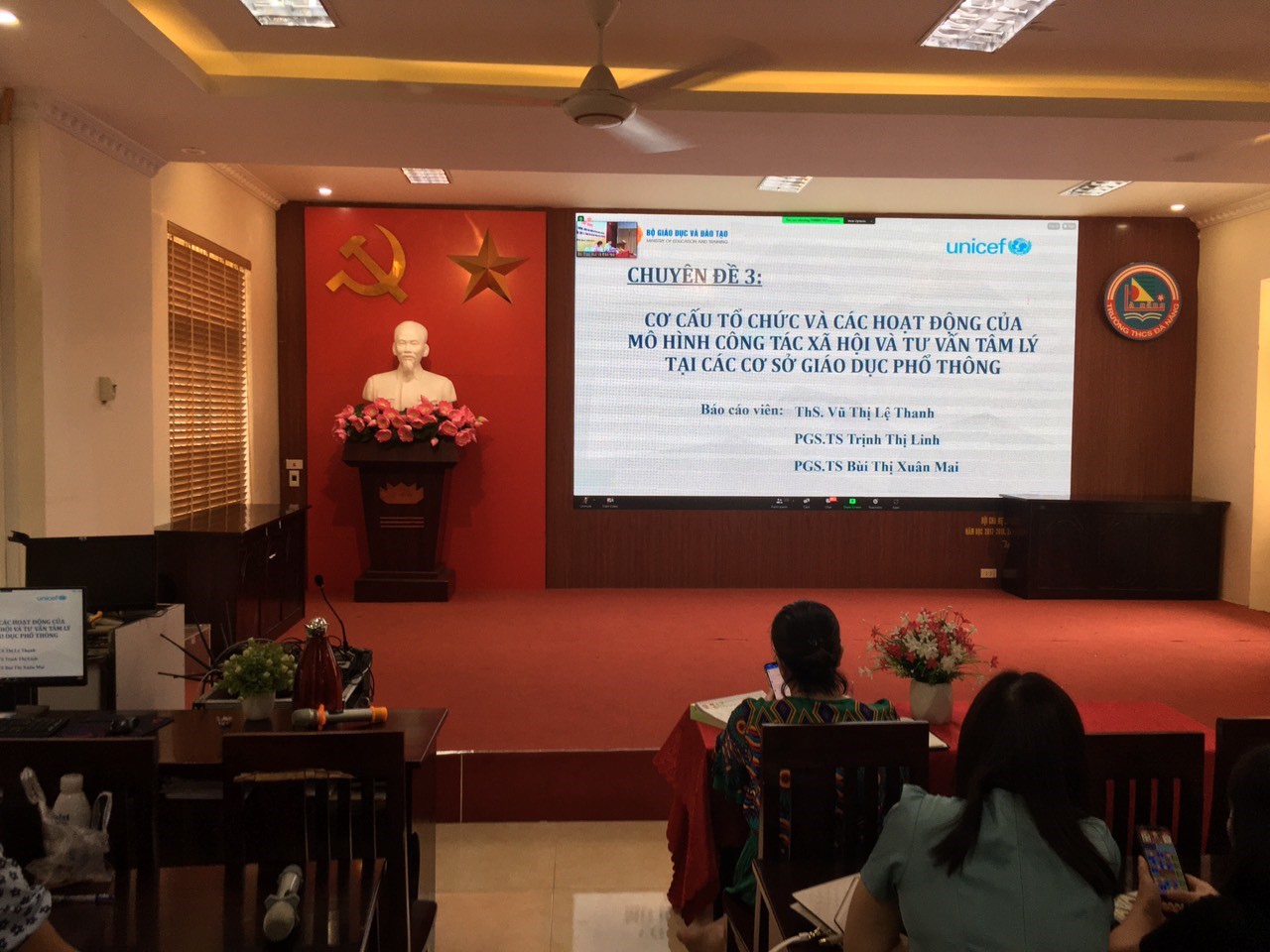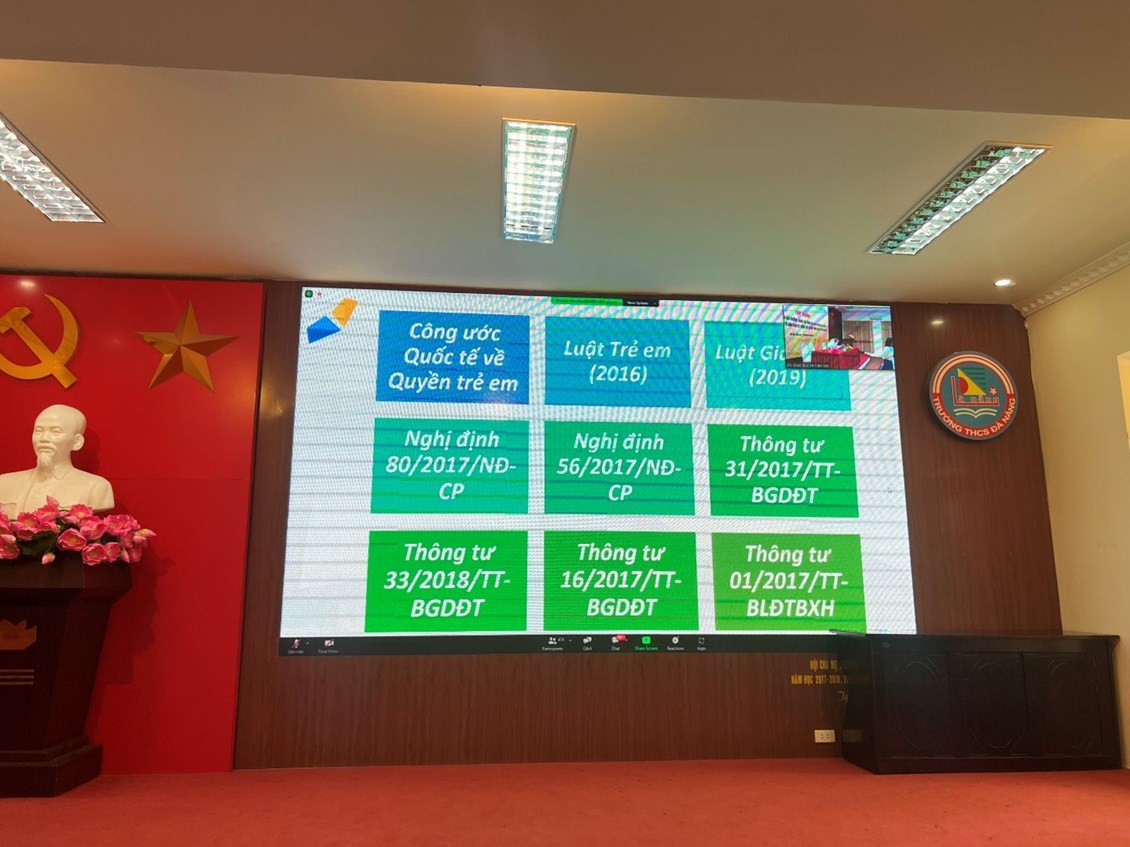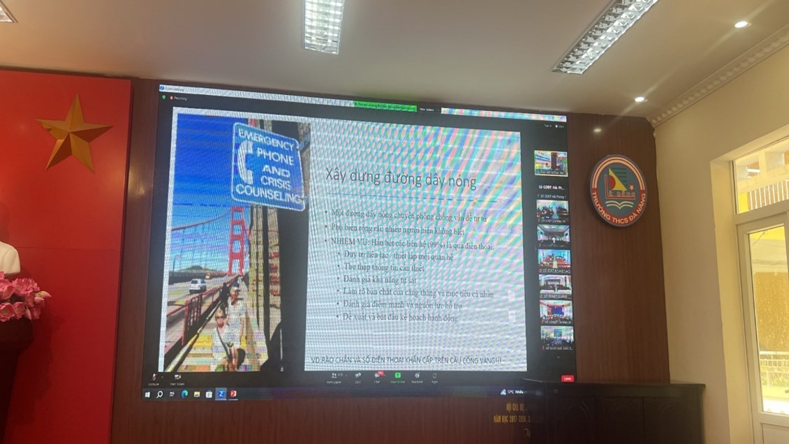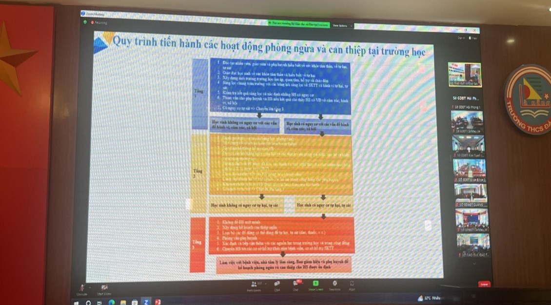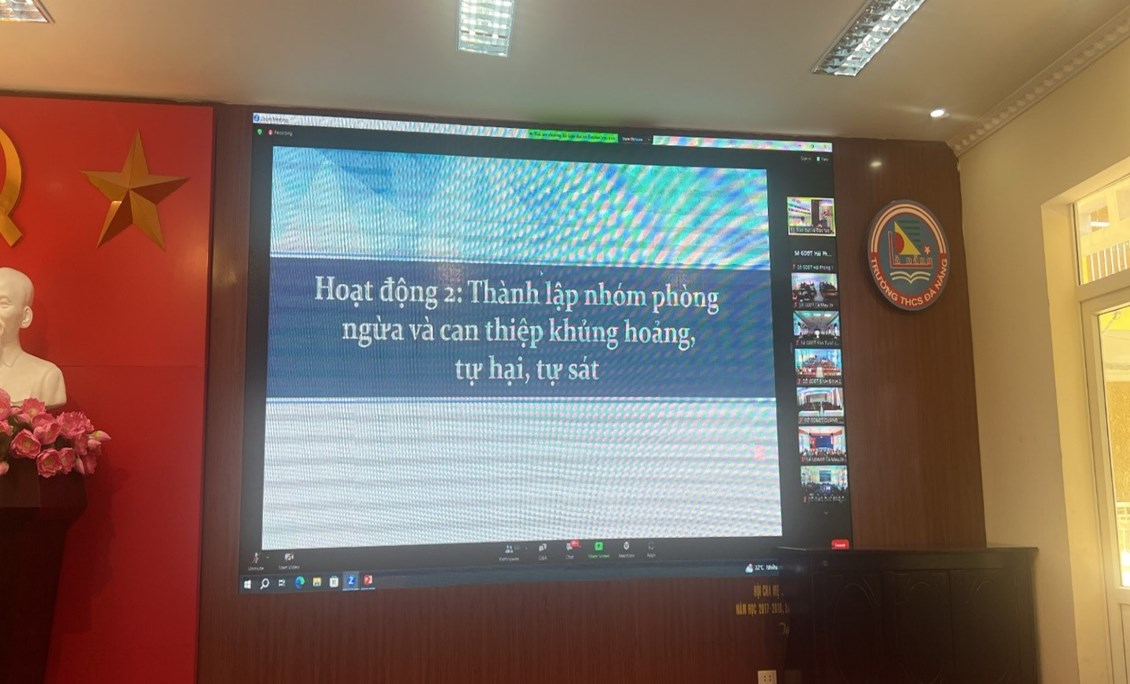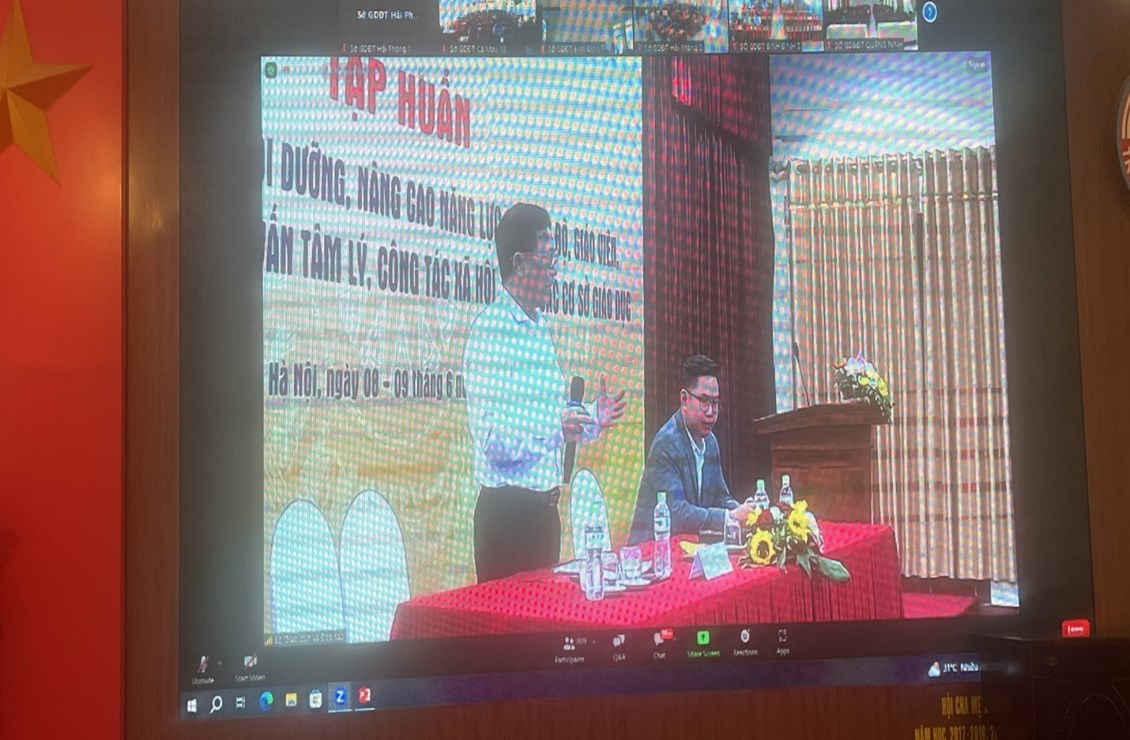 Thực hiện Công văn số 2544/BGDĐT-GDCTHSSV ngày 26/5/2023 của Bộ Giáo dục và Đào tạo về việc tham dự Tập huấn triển khai Tư vấn tâm lý trong các cơ sở giáo dục. Chương trình tập huấn diễn ra trong hai ngày 8 và 9 tháng 6 năm 2023, được tổ chức trực tuyến với hàng trăm điểm cầu kết nối đến đội ngũ nhà giáo các địa phương trên cả nước. Tại điểm cầu trường THCS Đà Nẵng, Phòng GD&ĐT quận Ngô Quyền đã triệu tập 87 đồng chí cán bộ quản lí, giáo viên phụ trách tâm lý học đường của các trường mầm non, tiểu học, trung học cơ sở trên địa bàn quận tập huấn.