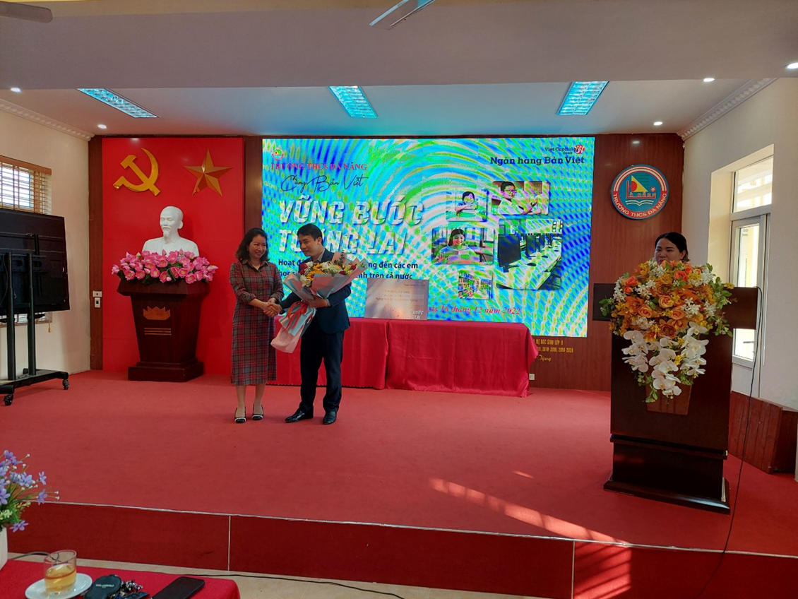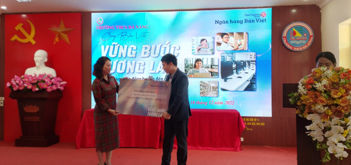Cuối chương trình, các vị khách mời đã tham quan thư viện của nhà trường, nơi các em đang học tập, nghiên cứu bài học. Những món quà ý nghĩa này từ ngân hàng Bản Việt sẽ là động lực và hành trang cho các em tiếp tục vững bước trên con đường khám phá tri thức. Đồng thời, góp phần đưa trường THCS Đà Nẵng tới gần hơn với mục tiêu chuyển đổi số trong thư viện nhà trường.