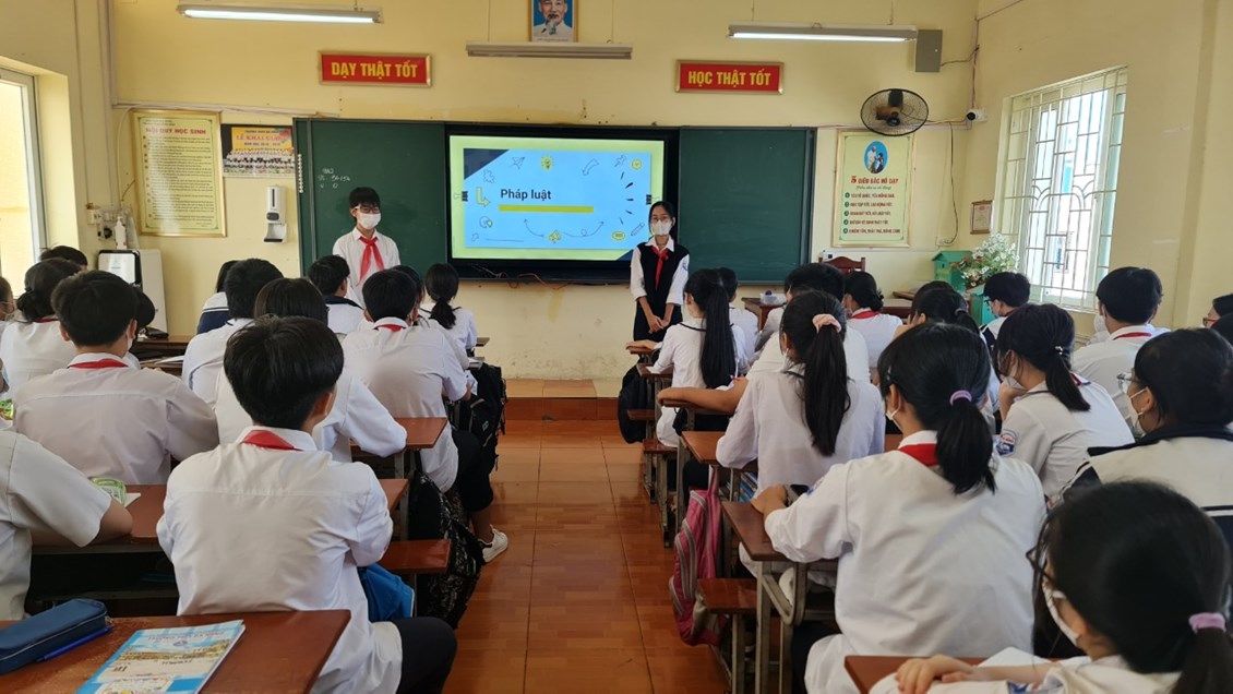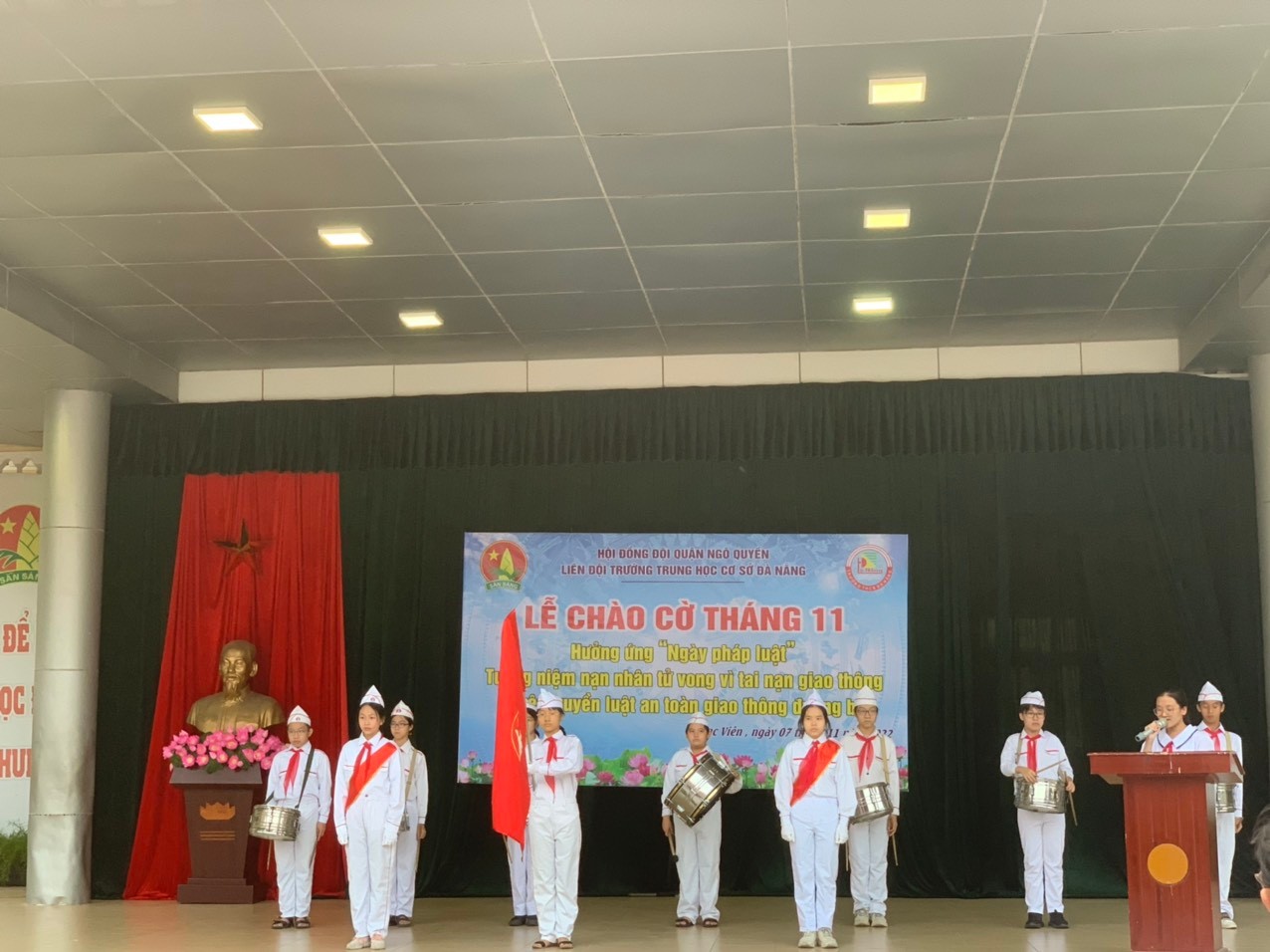 🌼Chương trình diễn ra trang trọng với nghi lễ chào cờ chuẩn theo điều lệ nghi thức Đội. Các thầy cô giáo cùng các em học sinh đã dành một phút mặc niệm cho các nạn nhân tử vong do tai nạn giao thông với thông điệp “Tưởng nhớ người đi – Vì người ở lại”. Chương trình đã phát động hưởng ứng năm thứ 10 “Ngày Pháp luật Việt Nam” bằng việc tuyên truyền cụ thể cho học sinh toàn trường về Luật giao thông đường bộ… Đồng thời trong tháng 10, tất cả các Chi đội đã tổ chức tìm hiểu “Ngày Pháp luật”, đặc biệt chú trọng Luật Trẻ em tại các lớp học. Thông qua các hoạt động này, học sinh càng hiểu sâu hơn về vai trò của Hiến pháp, Pháp luật; quyền và bổn phận của trẻ em, nâng cao ý thức thực hiện và chấp hành pháp luật đặc biệt là vấn đề đảm bảo an toàn khi tham gia giao thông. Đây là một trong những hoạt động nhằm tôn vinh, khẳng định vị trí, vai trò của Hiến pháp, Pháp luật; giáo dục cho các em tinh thần trách nhiệm, là nền tảng để xây dựng những hành vi ứng xử đúng đắn; giúp các em thêm yêu đất nước, xây dựng đạo đức, lối sống, góp phần hình thành và phát triển cho học sinh những phẩm chất tốt đẹp.